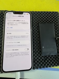 こちらはiPhone14バッテリー交換を承りました。