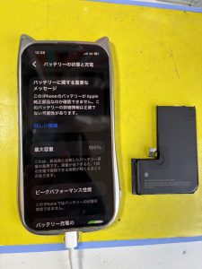 こちらはiPhone14Proバッテリー交換を承りました。
